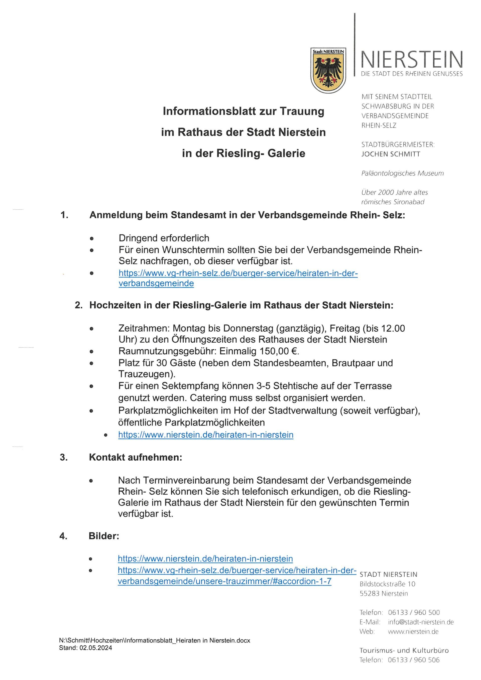 Die Riesling Galerie steht Ihnen ganzjährig (außer an Samstagen) für standesamtliche Trauungen zur Verfügung (siehe Infoblatt unten)