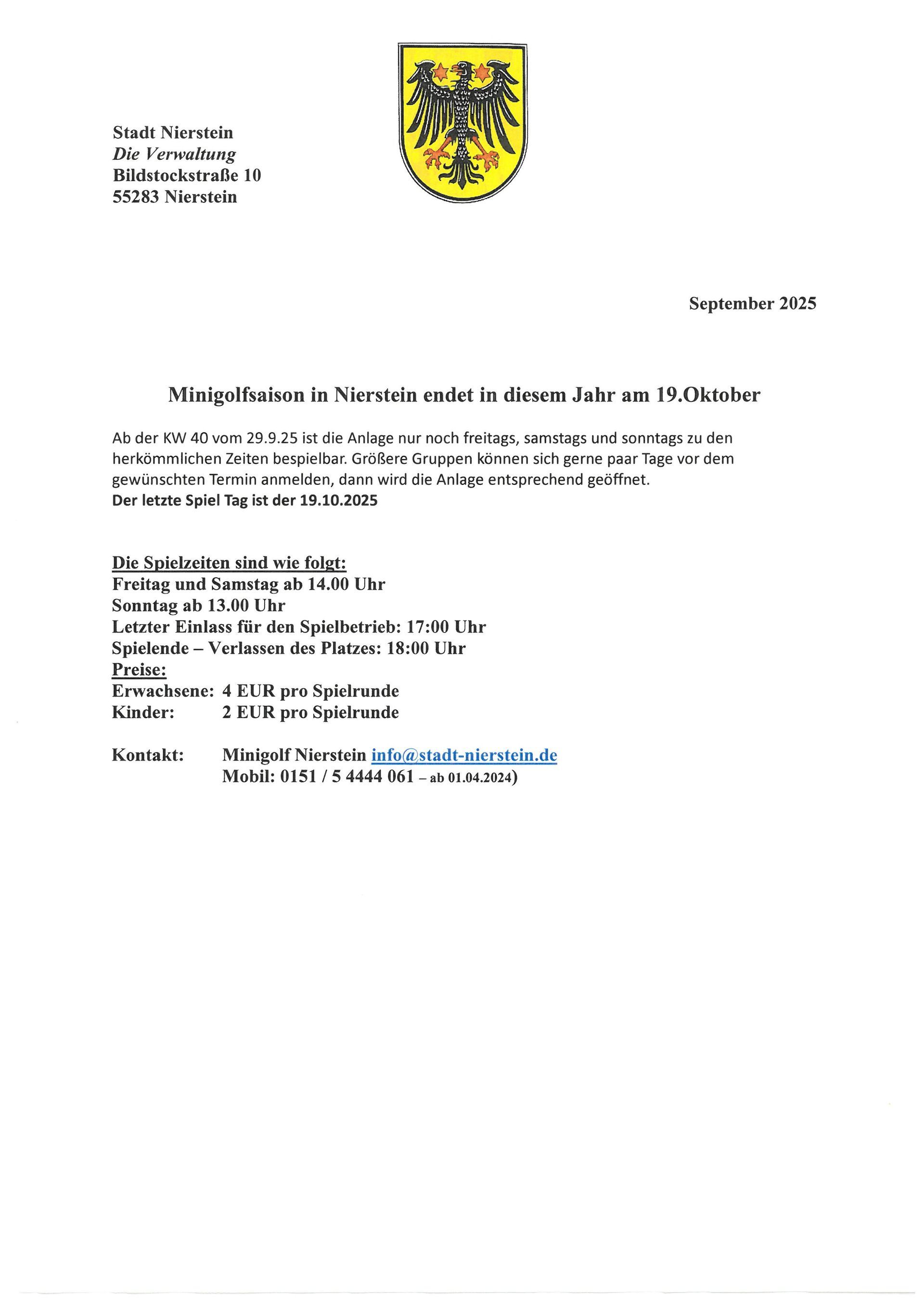 Bitte beachten sie, dass das Rathaus der Stadt Nierstein am 2. Oktober urlaubsbedingt geschlossen bleibt.